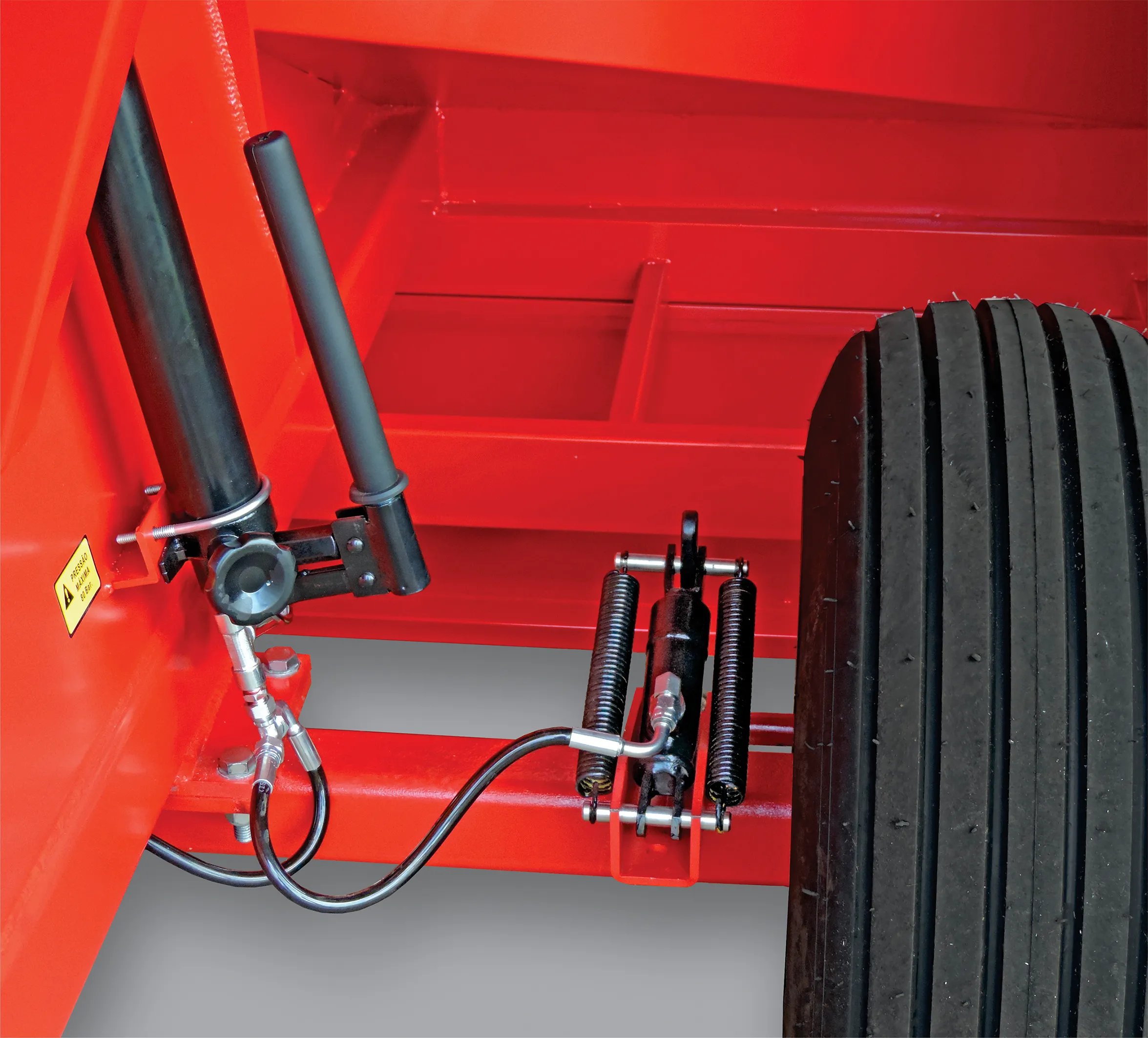 O sistema de freios a tambor com acionamento hidráulico garante alta compactação, removendo oxigênio e preservando a qualidade nutricional por longos períodos.